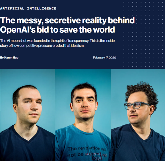 图 | 郝珂灵的深度报道,图片封面分别为当时 OpenAI 高层:Greg Brockman,、Ilya Sutskever 和 Dario Amodei(来源:麻省理工科技评论)