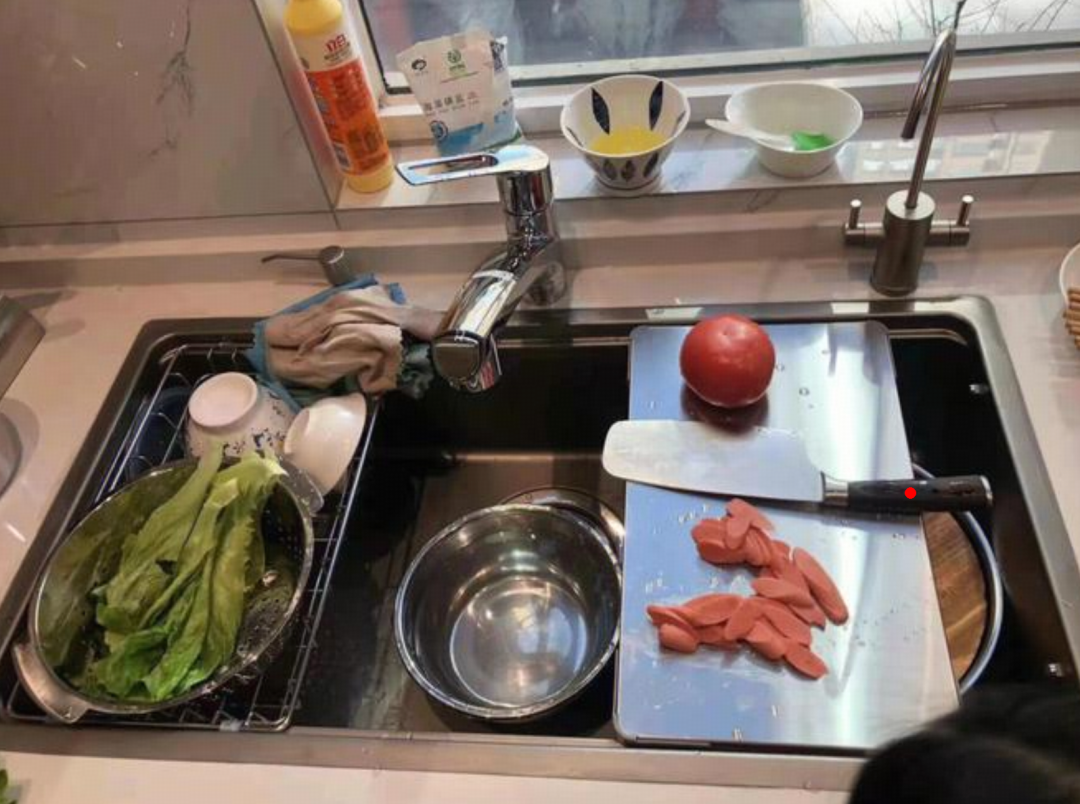模型在空间理解上的能力可以和具身机器人结合。一个实测案例是一张厨房场景照片,提示词是「我想切火腿肠,请问我的手应该操作哪个位置?请在图中点出对应的位置」。模型标注出了菜刀刀柄的位置,并给出了操作指导