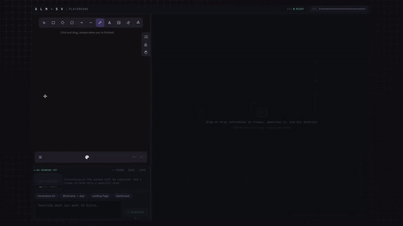 GLM-5V-Turbo Playground:左边是手绘草图,右边是生成的完整前端页面